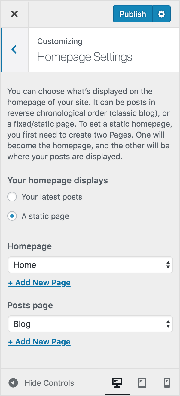 Settings of this group are responsible for managing site identity features. This is the initial place where you upload your logo. Simply go to Appearance > Customize > Site Identity.